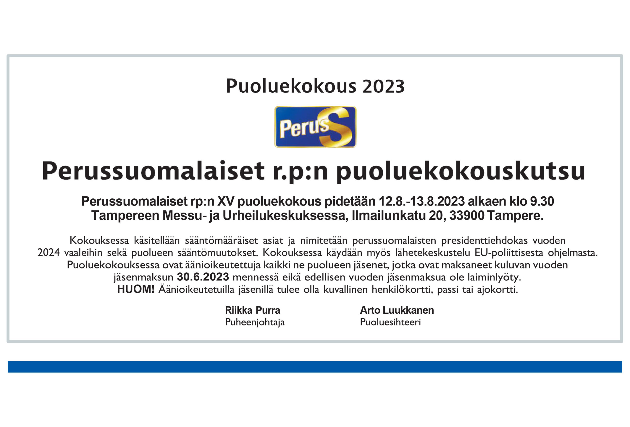 Raahen Perussuomalaiset ry SYYSKOKOUS su 3.11 klo 14.00 Praati